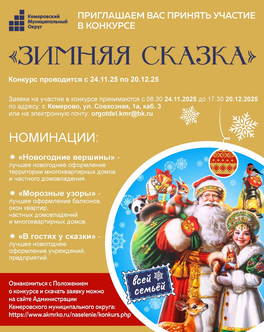 О проведении конкурса на лучшее новогоднее оформление территории Кемеровского муниципального округа «Зимняя сказка»